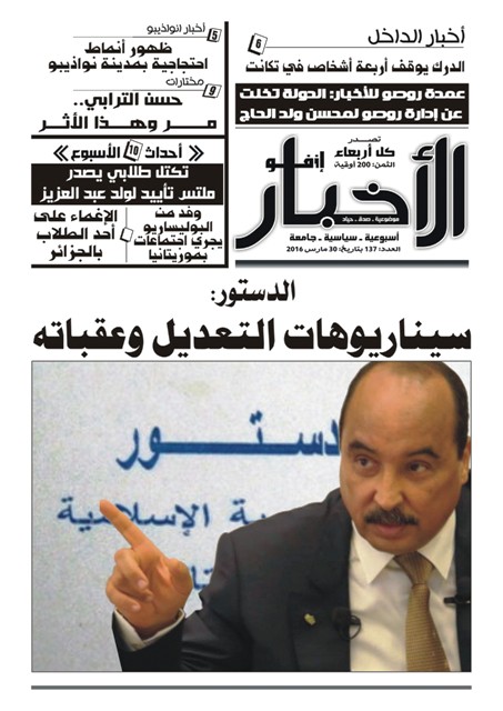 وتؤكد مصادر سياسية لصحيفة "الأخبار إنفو" أن النقاش داخل الكتلة الصلبة للنظام الموريتاني يتركز حول ثلاث سناريوهات رئيسية لتغيير الدستور، هي، سناريو "إعادة التأسيس"، وسناريو التوافق السياسي الشامل، فضلا عن السناريو التقليدي والذي تم لبعض مواد الدستور في العام 2012.