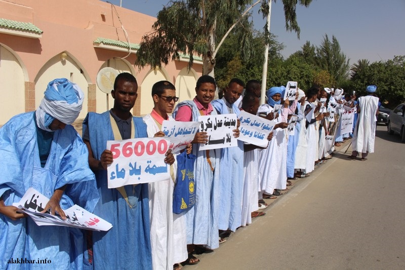 الأخبار (نواكشوط) ـ احتج عدد من شباب مدينة عدل بكرو الحدودية اليوم الخميس 14 فبراير 2019 أمام بوابة القصر الرئاسي ضد أزمة العطش التي تعيشها المدينة.