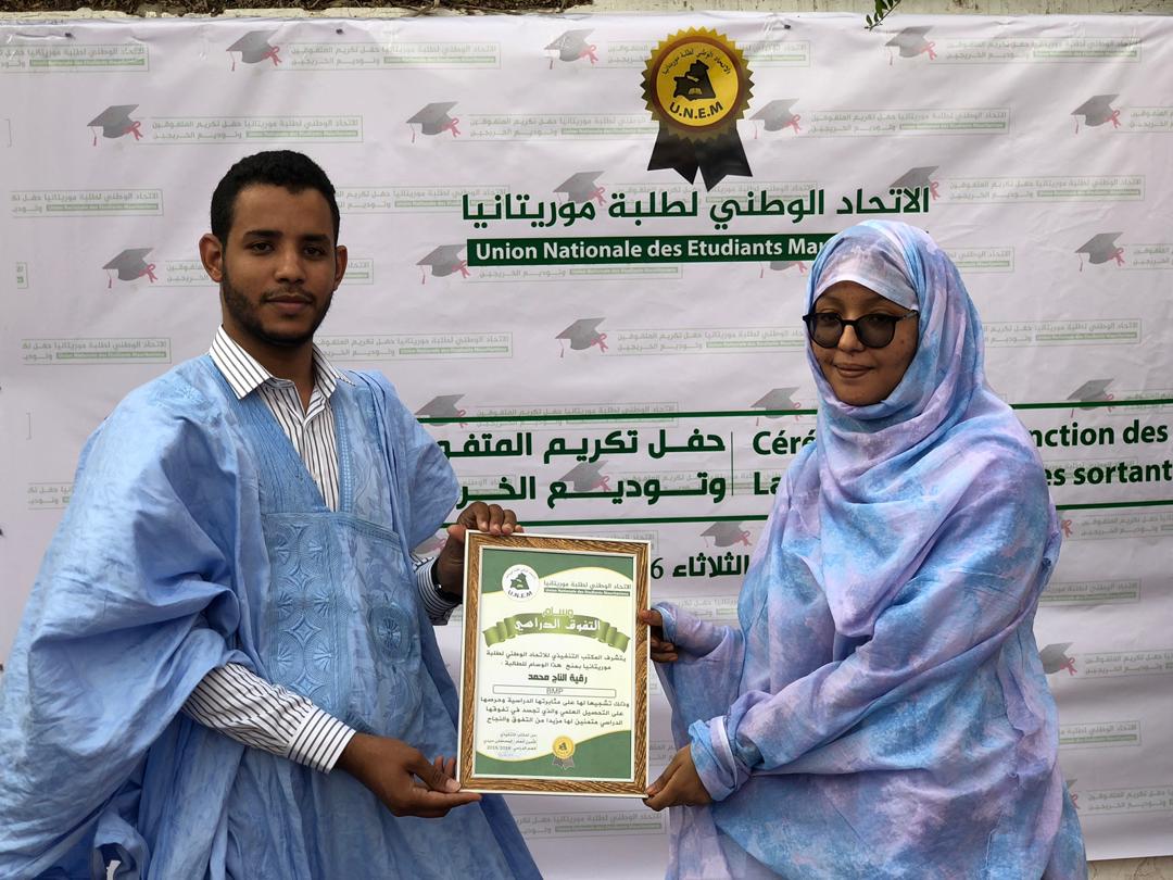 الأخبار (نواكشوط) ـ نظم الاتحاد الوطني لطلبة موريتانيا حفلا لتكريم المتفوقين في امتحان الباكلوريا والمتفوقين في مؤسسات التعليم العالي بنواكشوط ولعيون وروصو، إضافة إلى الخريجين من هذه المؤسسات.