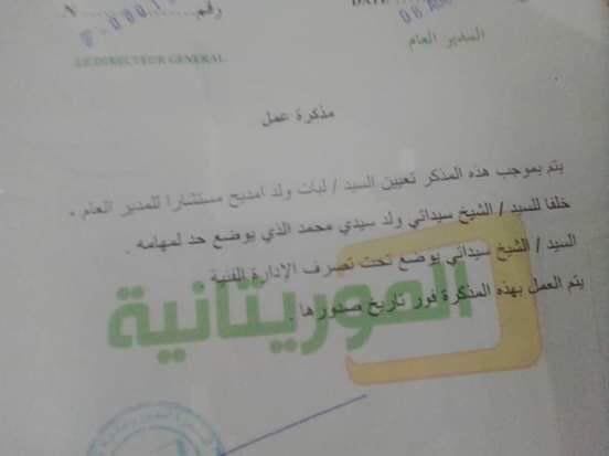 الأخبار (نواكشوط) ـ أعلنت الإدارة العامة لقناة الموريتانية عن تعيين لبات ولد امنيح مستشارا للمدير العام عبد الله ولد أحمد دامو، خلفا للشيخ سيداتي ولد سيدي محمد "الذي يوضع حد لمهامه".