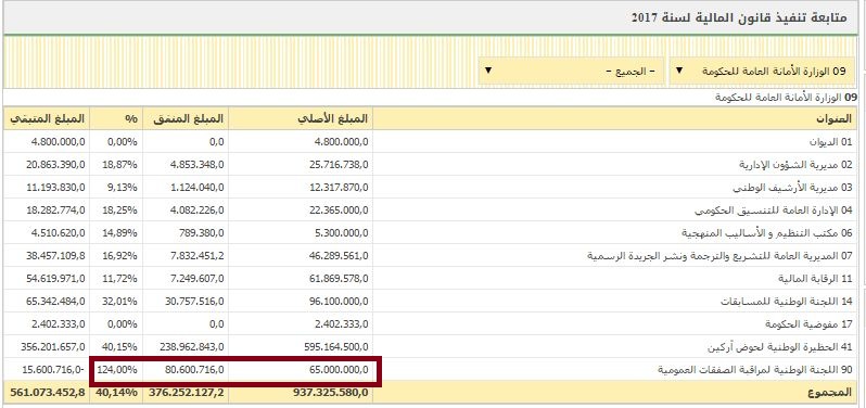 وكانت الأخبار قد نقلت أمس الأربعاء عن أسبوعية الأخبار إنفو أن اللجنة الوطنية لمراقبة الصفقات العمومية التابعة للأمانة العامة للحكومة قد أنفقت 124% من ميزانيتها.