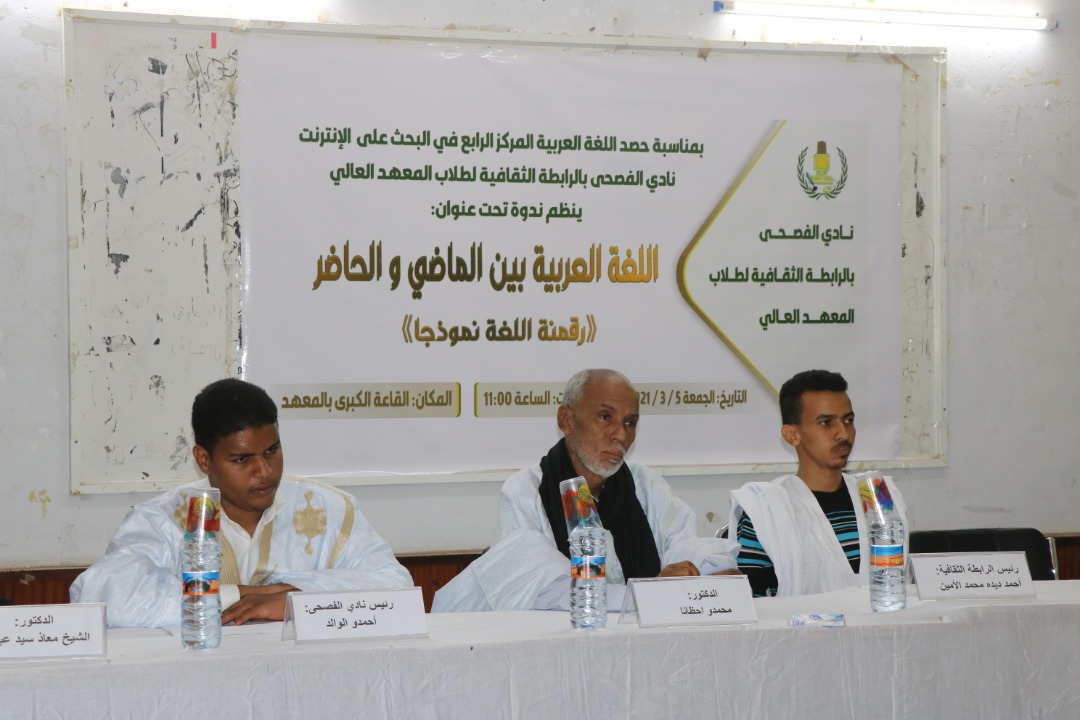 الأخبار (نواكشوط) ـ نظم نادي الفصحى بالرابطة الثفافية لطلاب المعهد العالي، اليوم الجمعة ندوة ثقافية تحت عنوان: "اللغة العربية بين الماضي والحاضر، رقمنة اللغة نموذجا".