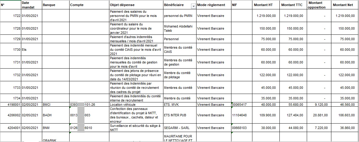 وتظهر الوثائق وكشوف الصرف أن المشروع تعامل مع عشرات الشركات، وصرف لها نحو 50 مليون أوقية خلال ثمانية أشهر.