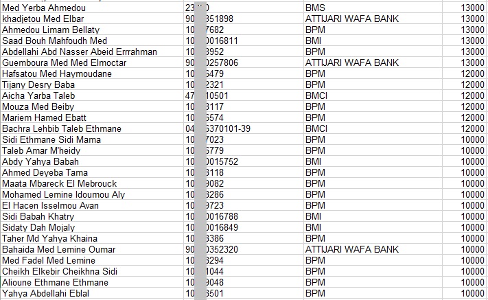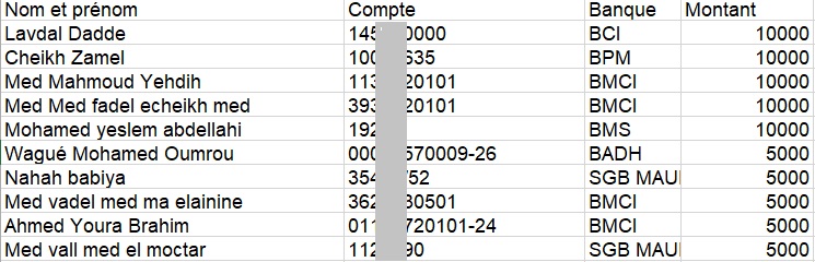 وبلغ هؤلاء عشرة أشخاص، كانت علاوة خمسة منهم 100 ألف أوقية قديمة شهريا، فيما كانت علاوة الخمسة المتبقية خمسين ألف أوقية قديمة شهريا.