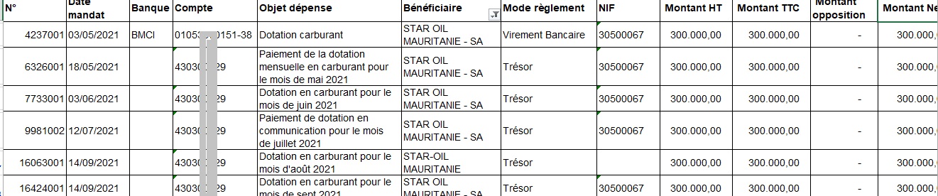 وتكشف الوثائق التي حصلت عليها الأخبار أن المبلغ الذي صرف كرواتب للعمال الذي لم يتم تحويلهم إلى نظام الرواتب وصل 3.160.000 أوقية شهريا، وذلك خلال الفترة من يونيو وحتى نوفمبر 2021.