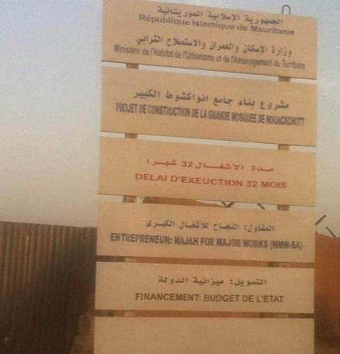 الأخبار (نواكشوط) ـ حجبت شركة "النجاح للأشغال الكبرى" التي تتولى تنفيذ بناء جامع نواكشوط الكبير في الركن الجنوبي الغربي من ساحة المطار القديم أهم مكونات التعريف بالمشروع، وهي المبلغ الذي سيكلفه، وكذا تاريخ بدأ أشغاله، فيما اكتفت بتوضيح أن بناءه يتم على حساب الميزانية العامة، وأن فترة أشغاله 32 شهرا.