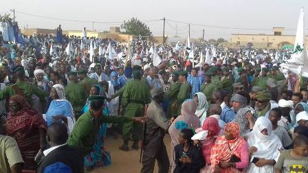وكان حلف وزير الاقتصاد والمالية المختار ولد اجاي قد قام ببناء أربع مخيمات مخصصة لضيافة الوفود والجماهير القادمة من بلديات المقاطعة لتنطلق منها بعد العصر أربع مسيرات باتجاه منصة المهرجان حيث تقدم عمدة كل بلدية المسيرة الخاصة ببلديته رافعين شعارات مؤيدة للتعديلات الدستورية ومطالبة بالمأمورية الثالثة.