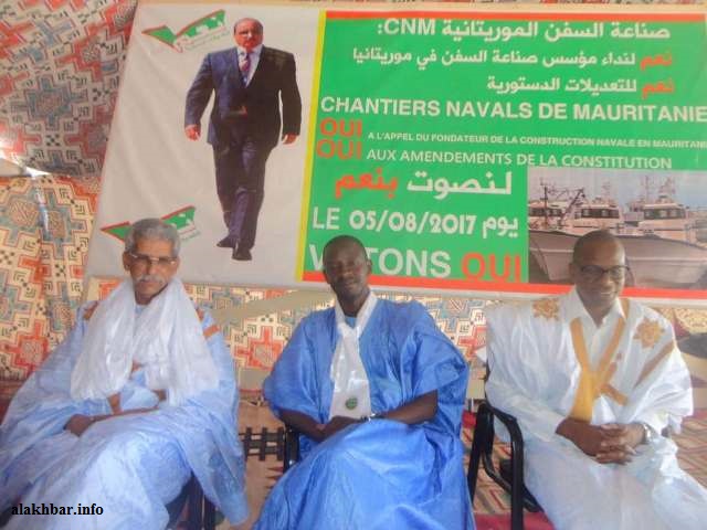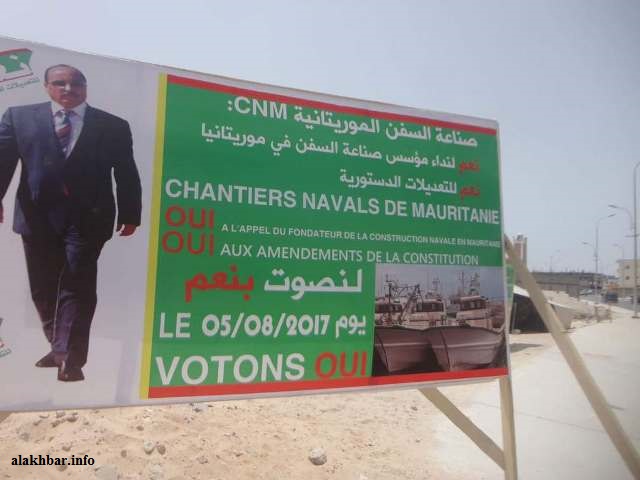 الأخبار (نواكشوط) ـ قال المدير العام لشركة صناعة السفن أحمدو تجاني أتيام إن مؤسسته عبأت كافة عمالها وأطقمها الإدارية على أن يصوتوا بـ "نعم" لصالح التعديلات الدستورية، وشكلت لجانا من أجل المتابعة والإشراف على عملية الاقتراع نظرا لما تكتسيه من أهمية بالغة، وفق قوله.