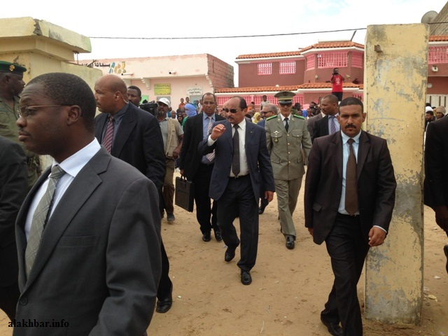 حيث يتولى عناصر من القطاع الأمني بزي مدني تأمين موكب الرئيس محمد ولد عبد العزيز بمساعدة حرسه الشخصي.