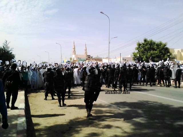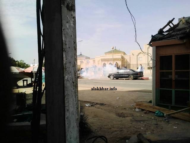 وقال موفدو الأخبار إلى عين المكان إن الشرطة استخدمت الهراوات والقنابل المسيلة للدموع لتفريق المشاركين في المسيرات الاحتجاجية المطالبة بإعدام كاتب المقال المسيء محمد الشيخ ولد امخيطير.